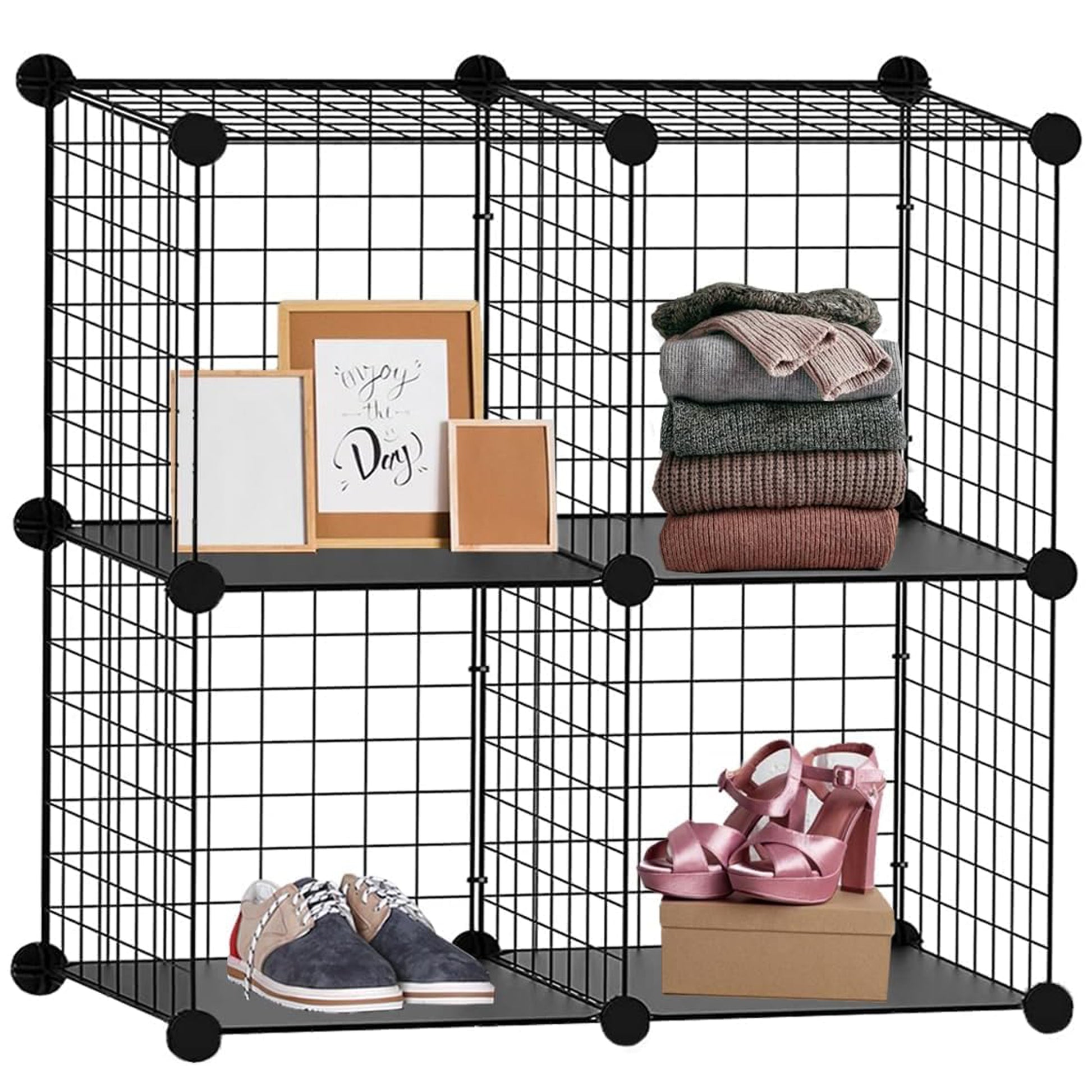 - Generous Storage Capacity: Featuring four spacious cubes, this storage rack offers ample capacity to store and organize your essentials.