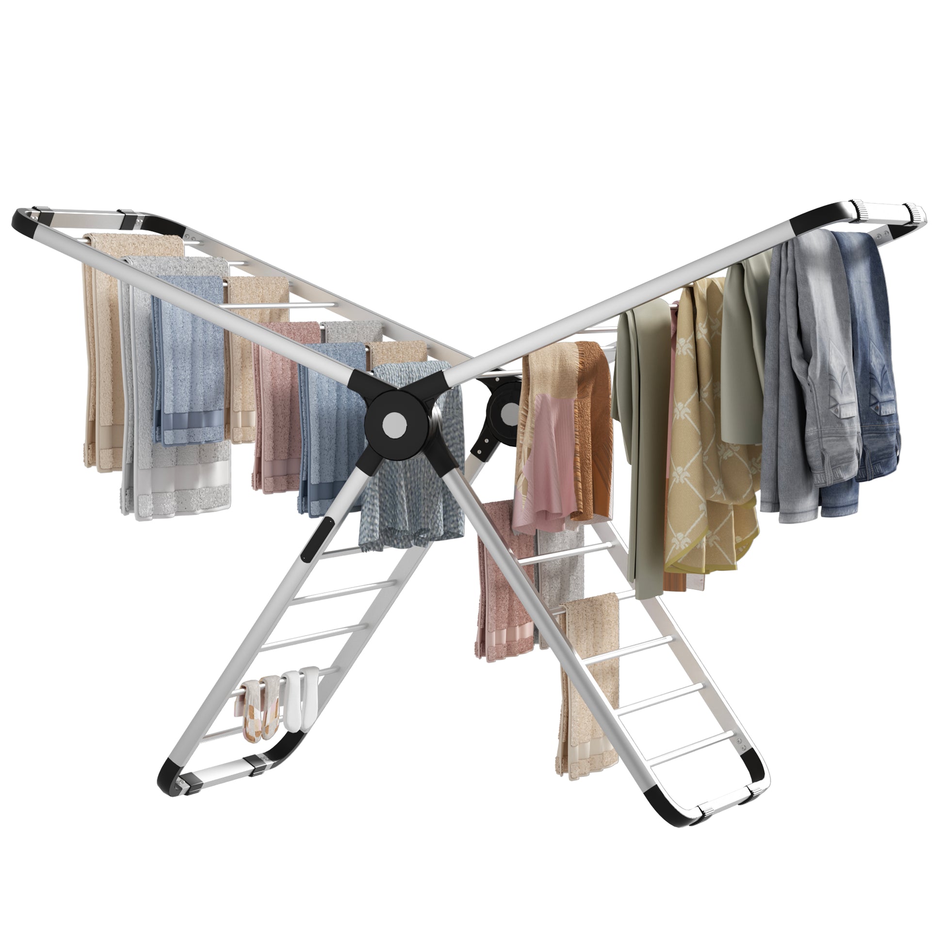 - Easy-To-Use & Foldable Design: Aero Dry–Series X features multi-functional design utilizing a rotary knob locking system which provides an adjustable positioning with multiple options to set the dryer at 140° angle or at 180° or both. Aero Dry–Series X clothes airer features a versatile drying configuration that fits your space and keeps the airer stable during use. Compact, freestanding space-saving and easy-to-assemble design folds down easily using the knobs for convenient storage in small spaces, when not in use and also convenient to be moved and repositioned easily within the rooms. Use & store indoor only.