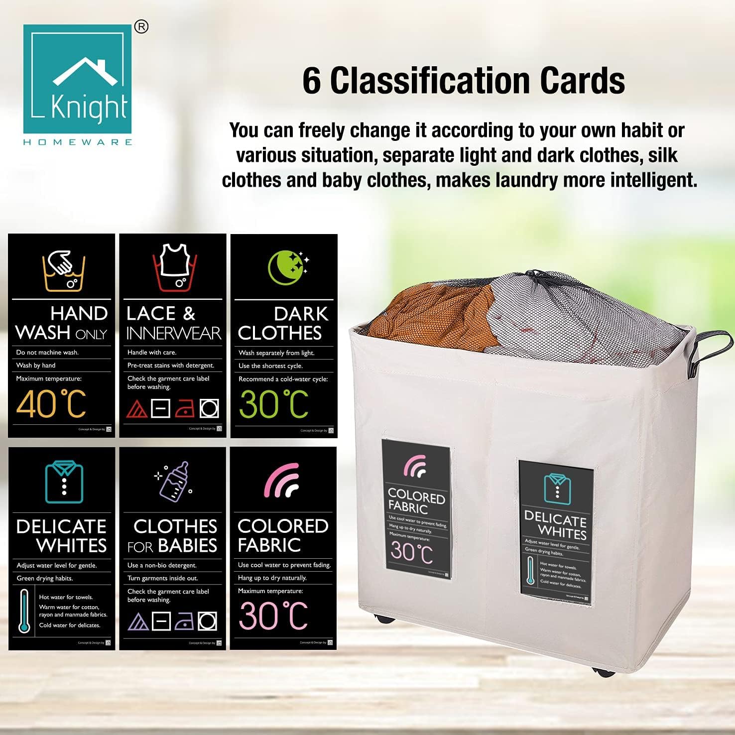 KNIGHT 120L Collapsible Laundry Basket with Wheels - Lightweight, 2 Section, Portable Washing Storage Bin with Mesh Cover & Handles - Durable Fabric (Ivory) Visit the Knight Store