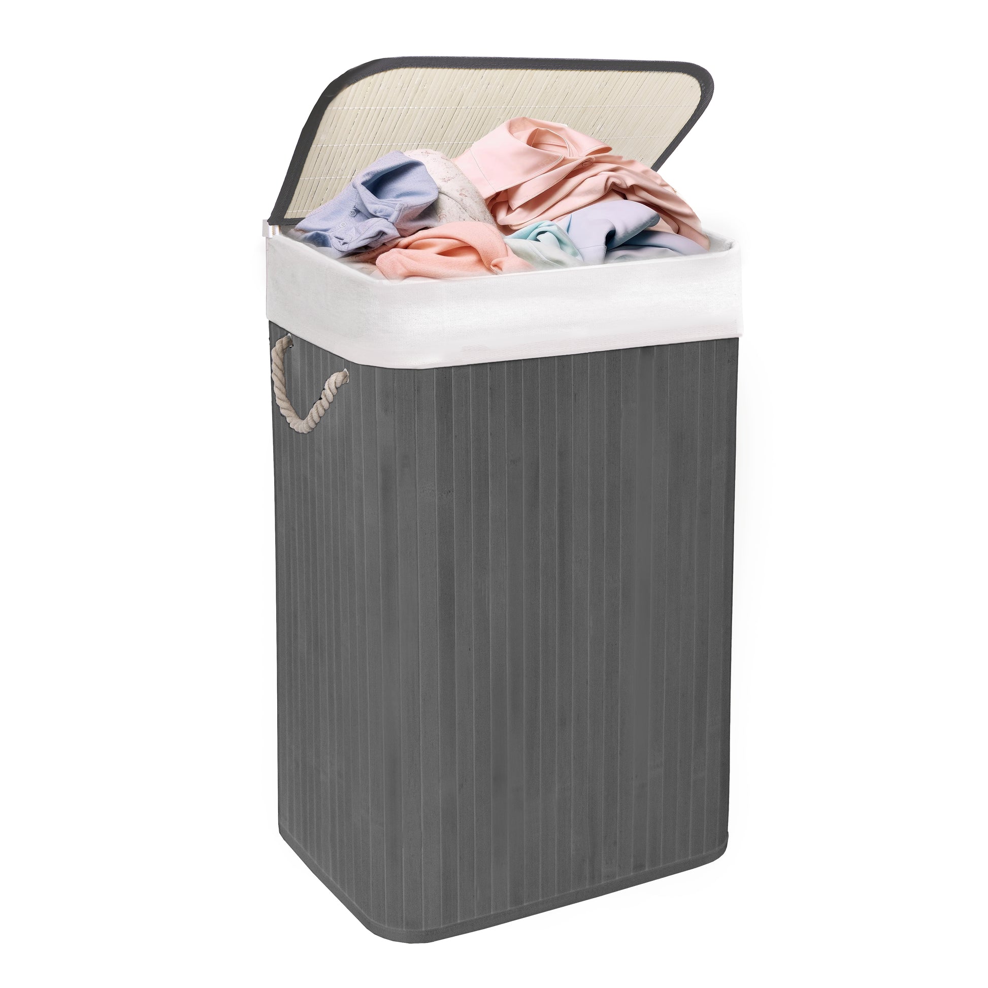 KNIGHT Bamboo Laundry Basket, 72L Laundry Hamper with Removable Washable Lining, Easy Assemble Easy Folding Storage Bin 40x30x60 cm – Grey